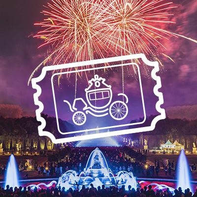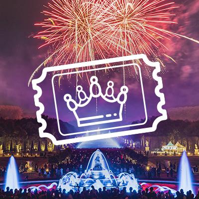 /!\ L’accès en voiture aux Grandes Eaux Nocturnes - Indépendance Américaine par la Grille de la Reine est réservé aux visiteurs munis d’un Billet Prestige ou Royal. Chaque visiteur, y compris les enfants de 4 à 17 ans, doit posséder l’un de ces billets. Seuls ces billets incluent le droit au stationnement.